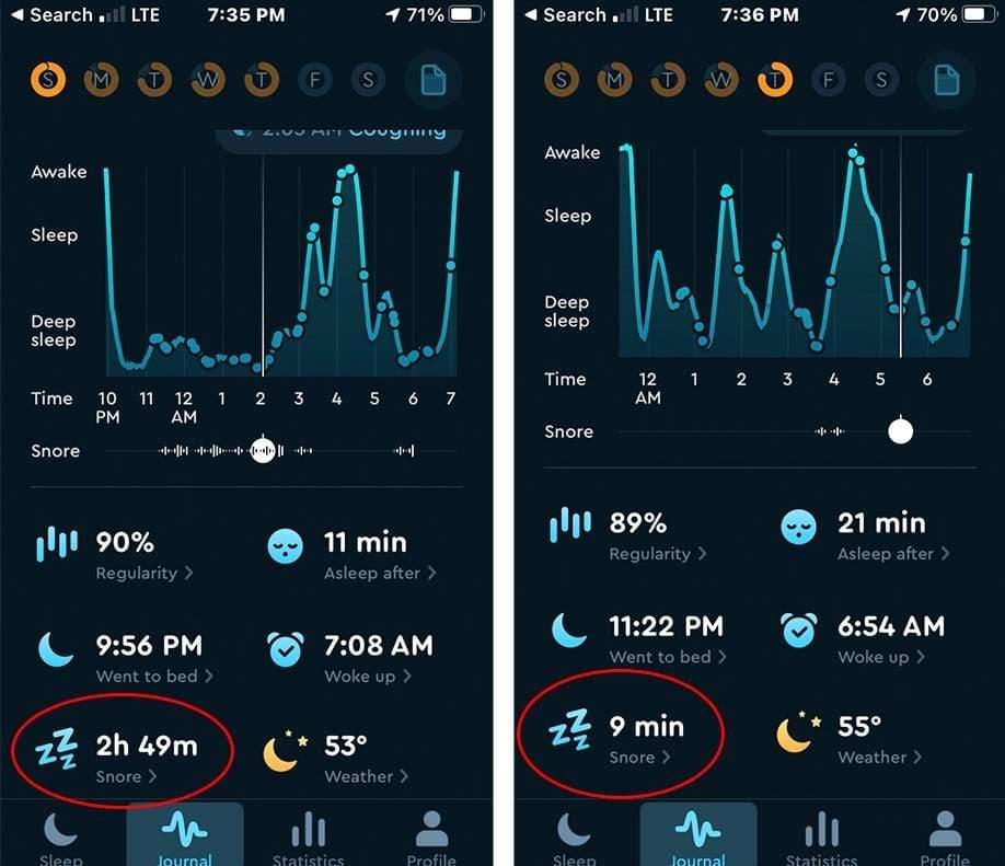 Snore time reduced from 2h 49m to 9 min on the first day of use!